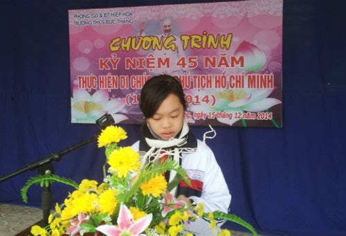 Sáng nay, 15-12, thực hiện kế hoạch hoạt động tháng 12, trường THCS Đức Thắng đã trang trọng tổ chức Chương trình kỷ niệm 45 năm thực hiện Di chúc của Chủ tịch Hồ Chí Minh.