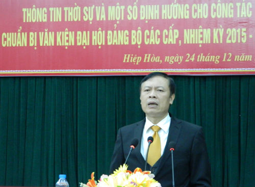 Chiều 24/12, Huyện ủy Hiệp Hòa tổ chức hội nghị cán bộ chủ chốt thông tin thời sự và định hướng cho công tác chuẩn bị văn kiện Đại hội Đảng bộ các cấp, nhiệm kỳ 2015- 2020.