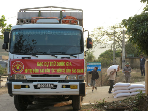 Xe chở gạo dự trữ Quốc gia cho đồng bào Sa Lý.
