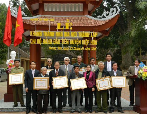 Sáng 27/1, BTV Huyện ủy Hiệp Hòa tổ chức lễ khánh thành Nhà bia nơi thành lập Chi bộ Đảng đầu tiên của huyện tại nội Đống Mú (nay nằm trong khuôn viên trường THCS Hoàng Vân), thôn Vân Xuyên, xã Hoàng Vân; trao tặng huy hiệu đảng cho các đảng viên đợt 3/2.