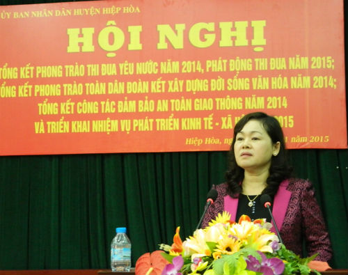 Sáng 29/1, UBND huyện Hiệp Hòa tổ chức hội nghị tổng kết phong trào thi đua yêu nước năm 2014, phát động thi đua năm 2015; tổng kết phong trào toàn dân đoàn kết xây dựng đời sống văn hóa, tổng kết công tác đảm bảo ATGT năm 2014, phương hướng nhiệm vụ năm 2015 và triển khai nhiệm vụ phát triển kinh tế- xã hội năm 2015.
