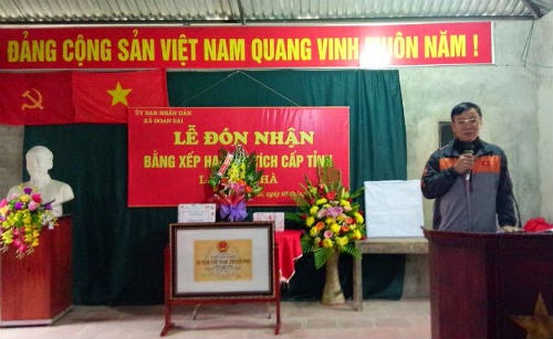 Ngày 07/02, Đảng uỷ, HĐND-UBND xã Đoan Bái cùng ban quản lý thôn Cầu và gia tộc Họ Hà long trọng tổ chức lễ đón nhận Bằng xếp hạng di tích lịch sử cấp tỉnh đối với Lăng Họ Hà xã Đoan Bái. Tới dự với buổi lễ có các đồng chí là lãnh đạo Phòng Văn hoá và Thông tin, Trung tâm Văn hoá Thể thao huyện cùng đông đảo cán bộ, đảng viên trong xã và các gia đình thuộc dòng Họ Hà thôn Cầu xã Đoan Bái.