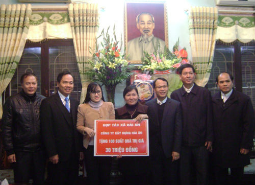 Nhân dịp này đồng chí Bùi Văn Hạnh cùng đoàn công tác của công ty xây dựng Hải Âu tặng 100 xuất quà cho người nghèo của huyện Hiệp Hòa, mỗi xuất quà trị giá 300 nghìn đồng bằng tiền mặt.