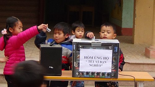 Sau hơn 10 ngày phát động phong trào ủng hộ “ Tết vi bạn nghèo”, học sinh toàn tường đã ủng hộ được 800 000 đồng, Hội cha mẹ HS ủng hộ 200 000 đồng, Ban Thường Vụ Đoàn xã Hương Lâm ủng hộ 200 000 đồng.Tổng số tiền ủng hộ được là 1200 000 đồng. Nhà trường đã tổ chức tặng quà cho 12 học sinh có hoàn cảnh khó khăn, trị giá mỗi xuất quà là 100 000 đồng.