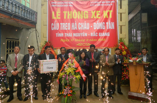 Sáng 17-2, tại xã Hà Châu (Phú Bình), UBND hai huyện Phú Bình, Hiệp Hòa phối hợp với Công ty Cổ phần Xây dựng và Phát triển nhà ở Song Điền tổ chức Lễ thông xe kỹ thuật cầu treo Hà Châu- Đồng Tân.