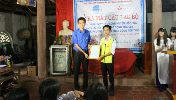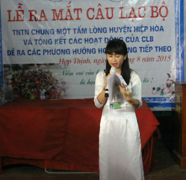 Sau những tiết mục văn nghệ chào mừng, đ/c Vũ Chí Công, PBT Huyện đoàn Hiệp Hòa đã trao quyết định thành lập CLB TNTN Chung một tấm lòng và chỉ định 3 đ/c trong Ban chủ nhiệm CLB . Cụ thể đ/c Trần Tuấn Hiệp – Chủ nhiệm CLB, hai Phó chủ nhiệm là đ/c Lê Thị Hà Phương và Cù Thanh Hải. Thay mặt Ban chủ nhiệm, đ/c Lê Thị Hà Phương đã trình bày bản báo cáo tổng kết và phương hướng hoạt động của CLB. Đ/c nêu rõ : trong thời gian vừa qua, CLB đã làm việc tích cực, thực hiện tốt khảu hiệu hành động của CLB, đó là:” Niềm vui của bạn là hạnh phúc của chúng tôi”. CLB đã vận động các tấm lòng từ thiện ủng hộ gia đình anh Tiến thôn Đức Nghiêm – Ngọc Sơn có hai con nhỏ mắc bệnh hiểm nghèo số tiền 35,5 triệu đồng, tổ chức phát cơm miễn phí cho các bệnh nhân tại Bệnh viện Hiệp Hòa mỗi tháng một lần, tổ chức tặng quà cho một số gia đình khó khăn trong huyện, động viên, khen thưởng học sinh nghèo vượt khó. Trong tháng 7 vừa qua, được sự giúp đỡ của bạn Trần Hồng Hạnh- Sinh viên Trường Đại học SP Hà Nội 2, CLB đã tổ chức thành công khóa học Tiếng Anh ngắn hạn cho 80 h/s cấp 1 và cấp 2 tại thôn Ninh Tào, đến hôm nay cũng là ngày bế giảng khóa học. Phát biểu tại buổi lễ, đ/c Vũ Chí Công đã ghi nhận những thành tích cụ thể có nhiều ý nghĩa tích cực của CLB và mong muốn CLB sớm ban hành quy chế hoạt động cụ thể, phát triển đội ngũ, mở rộng các hình thức hoạt động và tiếp tục khơi mở các tấm lòng từ thiện để làm được nhiều việc có ích hơn nữa cho quê hương Hiệp Hòa. Ông Nguyễn Ngọc Ký, trưởng thôn Ninh Tào đã thay mặt cấp ủy Đảng, chính quyền và nhân dân trong thôn cảm ơn các hoạt động giàu ý nghĩa của CLB.