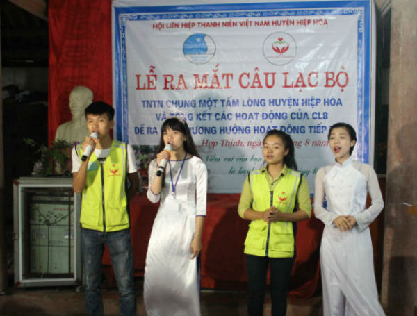 Sáng chủ nhật, 2/8, mặc dù trời vẫn mưa rất to nhưng vào lúc 8h15, tại đình làng Ninh Tào- Hợp Thịnh đã diễn ra Lễ ra mắt CLB TNTN Chung một tấm lòng huyện Hiệp Hòa. Tới dự, về phía huyện có đ/c Vũ Trường Sơn, Phó trưởng phòng GD-ĐT, đ/cVũ Chí Công- PBT Huyện đoàn Hiệp Hòa, đại diện BBT Hiephoa.net, Chi đoàn Bệnh viện đa khoa Hiệp Hòa, CLB Các thầy thuốc trẻ, CLB Chim cu gáy Hiệp Hòa . Về phía địa phương có đ/c Bí thư xã đoàn Hợp Thịnh cùng các đ/c lãnh đạo Đảng, chính quyền và gần 80 học sinh thôn Ninh Tào.