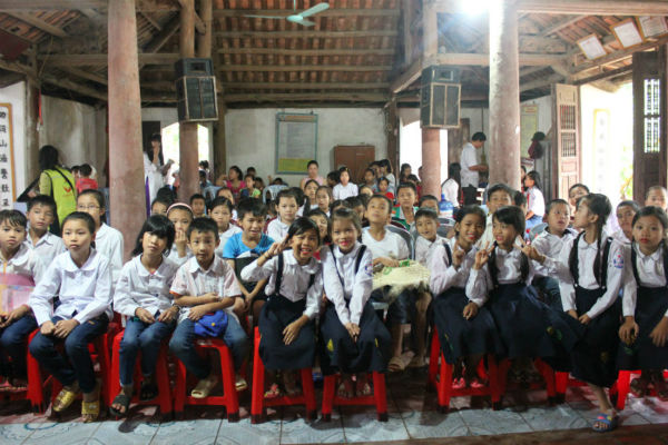 Cuối chương trình là phần trao quà của các tập thể và cá nhân cho các cháu học sinh thôn Ninh Tào- Hợp Thịnh.