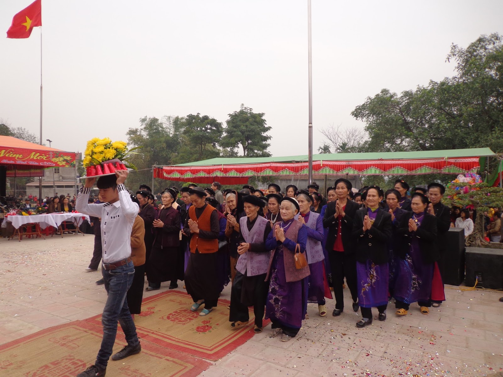 Đoàn các Cụ Ông, các Cụ Bà, Lãnh đạo xã, thôn, các Đội trong thôn…. vào dâng Lễ.