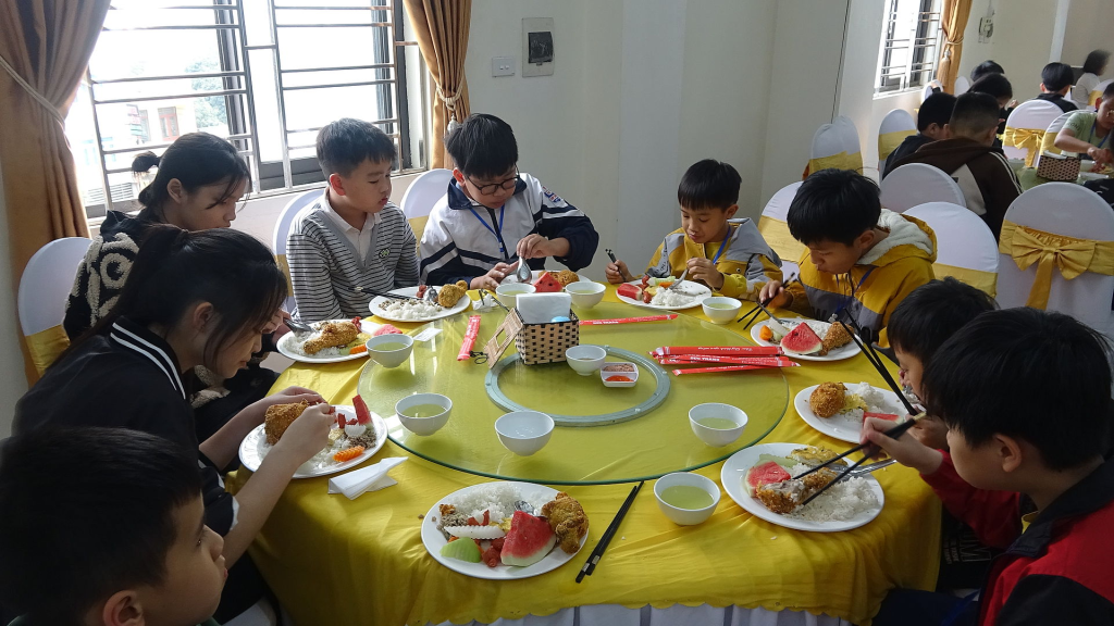 Các em được vẽ tranh cá nhân, nhóm chủ đề thể hiện tâm tư, được nói lên điều con muốn nói, được rèn tính kỷ luật khi xếp hàng ăn trưa…