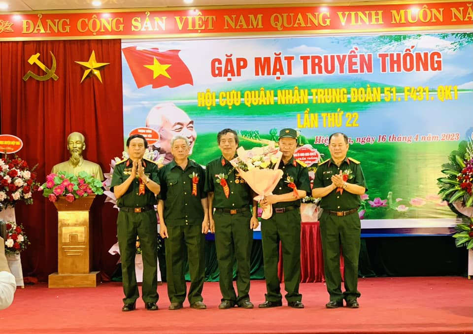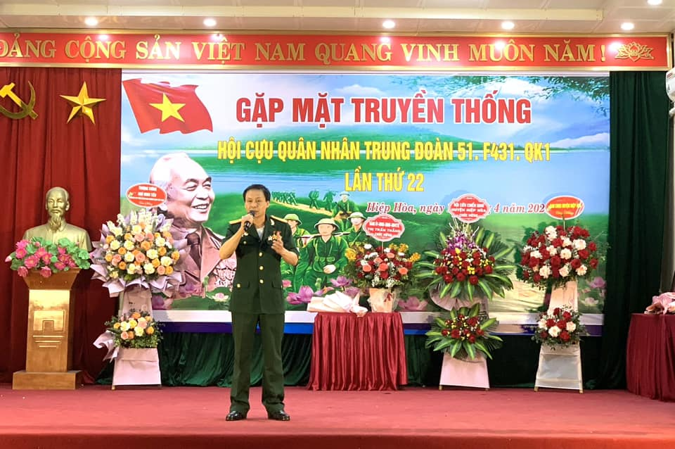Sáng nay ( 16/4) tại Hội trường UBND Thị trấn Thắng huyện Hiệp Hoà tỉnh Bắc Giang , BLL Hội cựu quân nhân E51-F 431 – QK1 đã long trọng tổ chức chương trình Gặp mặt truyền thống lần thứ 22. Về dự chương trình có đại diện nguyên chỉ huy trung đoàn, đại diện BCH Quân sự, Hội CCB huyện Hiệp Hoà, lãnh đạo Đảng, chính quyền Thị trấn Thắng, BLL Hội CCB F431 và đông đảo các đồng chí là hội viên Hội cựu quân nhân E 51 trong và ngoài tỉnh.