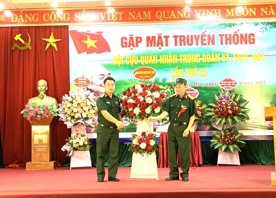Ban chỉ huy Quân sự huyện Hiệp Hoà tặng hoa chúc mừng