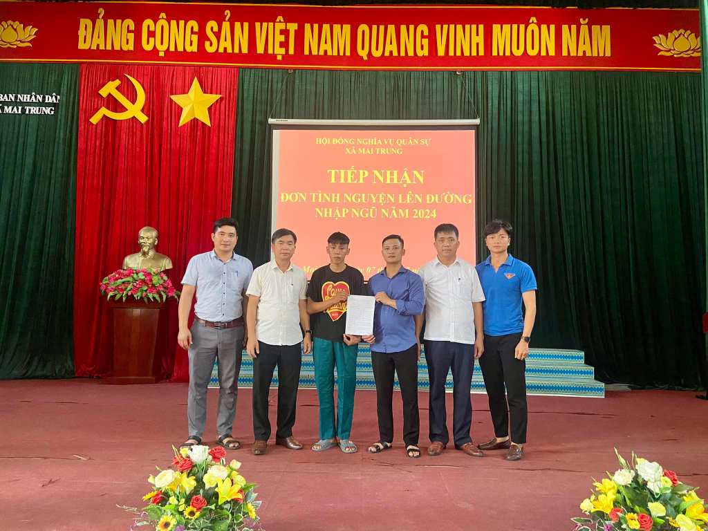 Đợt tuyển quân năm 2024 sắp đến là một trong những xã đi đầu phong trào thanh niên viết đơn tình nguyện nhập ngũ. Đồng chí Triệu Văn Huy, Chỉ huy trưởng Ban CHQS xã Mai Trung cho biết: Đối với những thanh niên viết đơn tình nguyện, xã đều dành nhiều sự quan tâm và khen thưởng, kèm theo tiền thưởng từ 300 đến 500 nghìn đồng. Quân nhân xuất ngũ được địa phương quan tâm, tạo điều kiện phát triển nghề nghiệp, làm kinh tế… nhờ vậy, phong trào thanh niên viết đơn xung phong nhập ngũ của địa phương ngày càng lan tỏa, mang lại hiệu quả thực sự trong công tác tuyển quân.