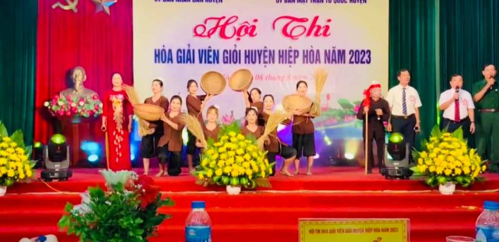 Hình thức thi: Tổ chức thi tập thể theo đội dưới hình thức sân khấu hóa. Mỗi đội thi tham gia 03 phần thi: Phần thi giới thiệu: Đội thi giới thiệu về các thành viên; đặc thù và tình hình công tác hòa giải ở cơ sở của địa phương bằng các hình thức phù hợp (kể chuyện, thơ, ca, hò, vè…); Phần thi lý thuyết: Đội thi trả lời các câu hỏi trắc nghiệm và đưa ra phương án hòa giải 01 tình huống mâu thuẫn, tranh chấp, vi phạm pháp luật do Ban Tổ chức Hội thi đặt ra; Phần thi tiểu phẩm: Đội thi dàn dựng và trình diễn tiểu phẩm dưới các hình thức kịch nói, ca kịch hoặc các hình thức nghệ thuật, sân khấu khác phù hợp về một vụ việc thuộc phạm vi hòa giải ở cơ sở đã xảy ra tại địa phương, được tổ hòa giải tiến hành hòa giải thành công và mang lại hiệu ứng tích cực.
