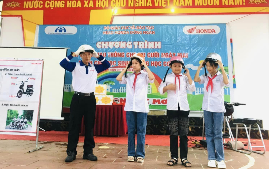 Sau khi cung cấp kiến thức, BTC đã tổ chức kiểm tra nhận thức của học sinh bằng nhiều cách. Chẳng hạn như phỏng vấn học sinh tại chỗ, chia các nhóm lên sân sấu để trả lời hoặc cho học sinh thực hành trên máy tập RT. Bằng tất cả các biện pháp đó, các KTV của HEAD Honda Đông Ngàn đã khắc sâu những kiến thức về ATGT cho học sinh, tạo nên môi trường hoạt động vui và hiệu quả. Cuối chương trình, BTC đã trao giải cho những học sinh tiêu biểu của trường qua các phần thi.