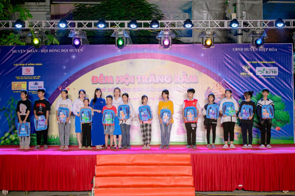 Nhân dịp này, Huyện đoàn, Hội đồng Đội huyện phối hợp vận động trao tặng 95 suất quà với tổng trị giá 42.500.000 đồng cho các em học sinh có hoàn cảnh khó khăn trên địa bàn huyện; tổ chức chương trình múa Lân cùng 17 tiết mục văn nghệ với sự góp mặt của các em thiếu nhi đến từ các Trung tâm nghệ thuật trên địa bàn huyện, giao lưu câu đố với các em thiếu nhi và trao giải mâm ngũ quả cho 05 đội thi với 01 giải A, 02 giải B và 02 giải C.
