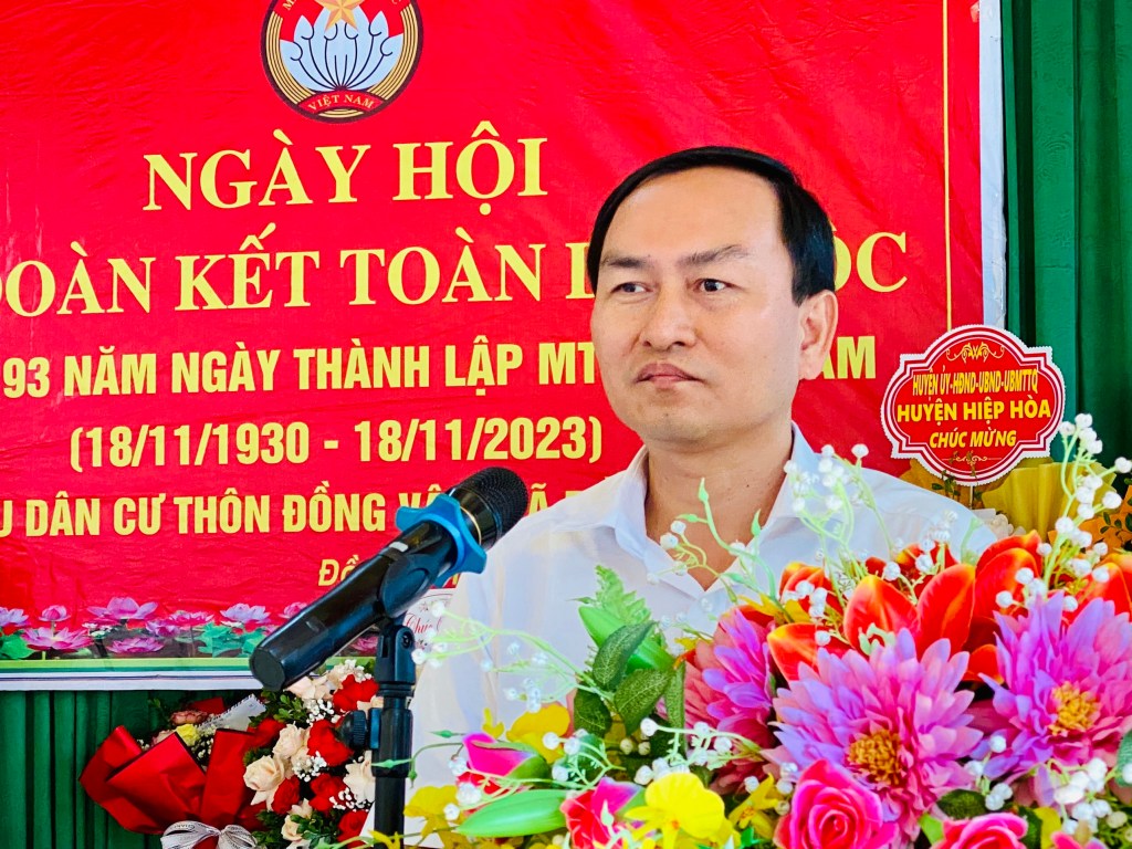 Sáng ngày 12/11/2023, thôn Đồng Vân xã Đồng Tân tổ chức Ngày hội Đại đoàn kết toàn dân tộc, đồng chí Nguyễn Tú Anh, Ủy viên Ban Thường vụ,Trưởng Ban tổ chức Huyện ủy đã đến dự và tặng hoa chúc mừng.