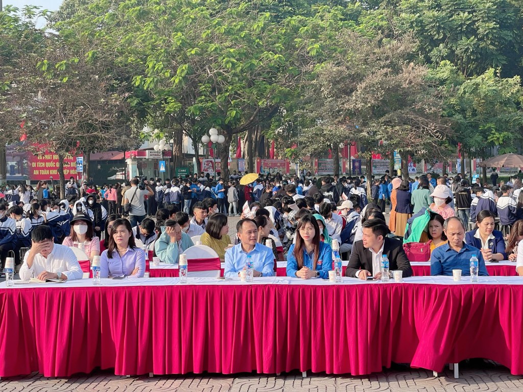 Đến dự tham dự chương trình có các đồng chí Lãnh đạo Trung tâm Giới thiệu việc làm tỉnh, lãnh đạo UBND huyện, Huyện đoàn, Phòng Lao động, thương binh và xã hội, Hội LHPN, Hội Nông dân, Phòng GD&ĐT và lãnh đạo UBND các xã, thị trấn, Bí thư, Phó Bí thư và hơn 4.000 đoàn viên thanh niên của Đoàn các xã, thị trấn, các trường THPT, Trung tâm GDNN-GDTX trên địa bàn huyện.