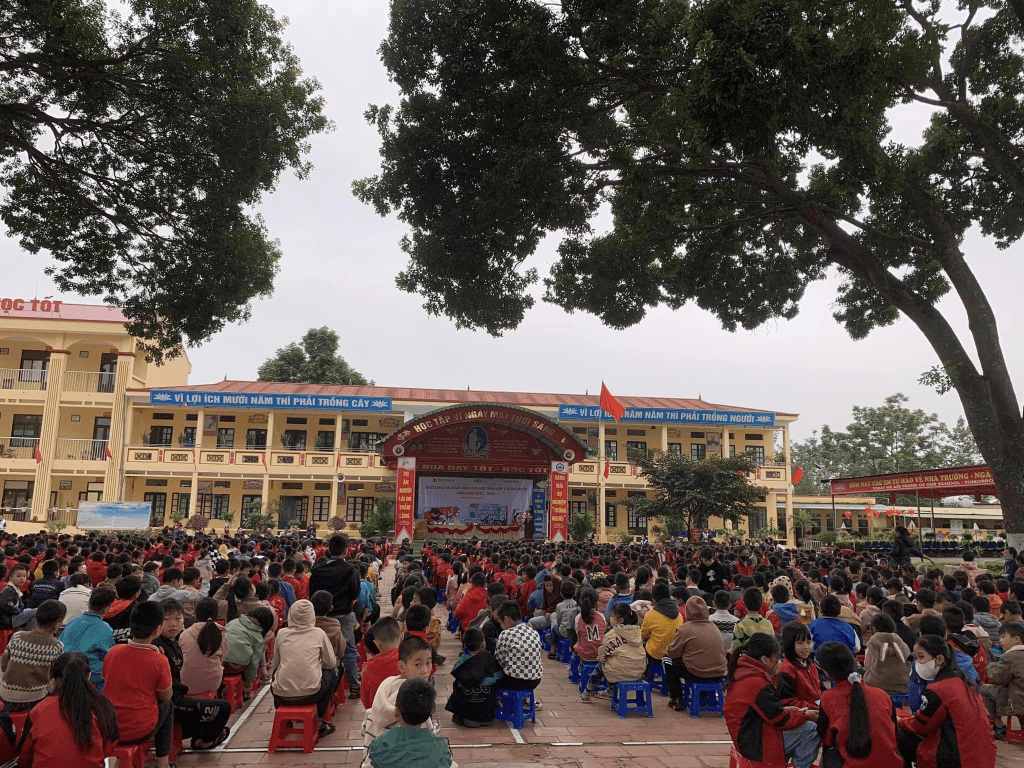 Thực hiện kế hoạch công tác tháng 12, sáng 5/12 /2023, tại trường Tiểu học xã Ngọc Sơn ( Hiệp Hoà), HEAD Honda Đông Ngàn đã tổ chức Chương trình trao tặng mũ bảo hiểm cho học sinh lớp 1 và kết hợp tập huấn kiến thức ATGT cho các cháu học sinh và các bậc PHHS. Tham dự chương trình này có 820 em học sinh cùng toàn thể các thầy giáo, cô giáo trong trường và đại diện các quý PHHS của tất cả các khối lớp trong trường.