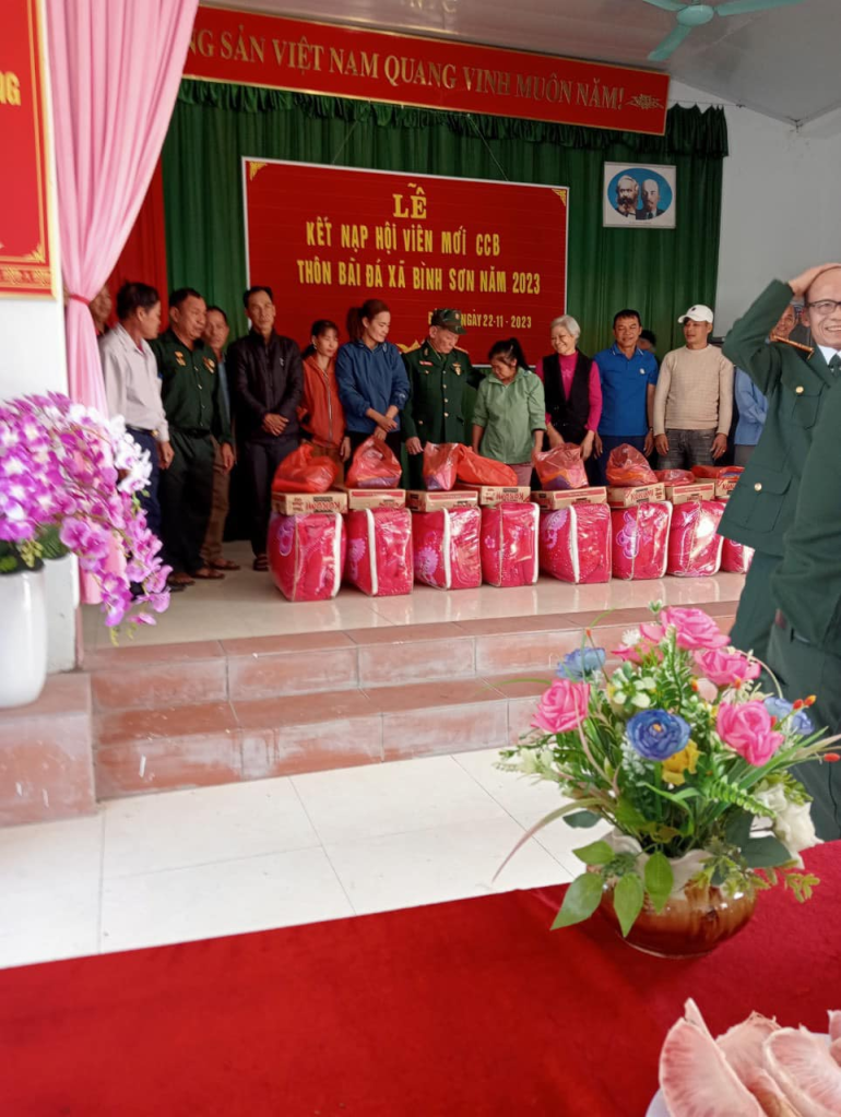 Tiếp đón đoàn có các đồng chí Nguyễn Đình Tuấn – BT Đảng uỷ – CT HĐND, Lý Văn Chính – PBT Đảng uỷ – CT UBND và đồng chí Nguyễn Hồng Bình – Chủ tịch Hội CCB xã Bình Sơn cùng các đồng chí lãnh đạo Đảng , chính quyền, chi hội CCB và nhân dân thôn Bãi đá – nơi tiểu đoàn 515 đóng quân .