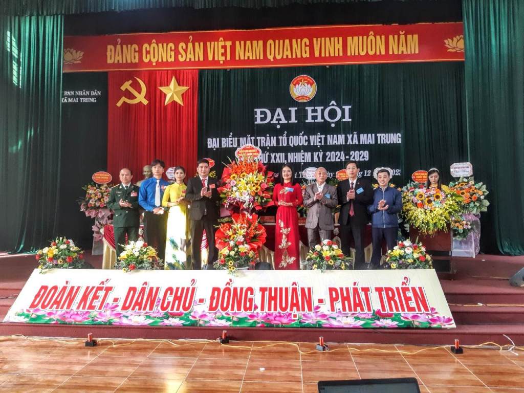 Ủy ban MTTQ Việt Nam xã Mai Trung nhiệm kỳ mới đã tổ chức hội nghị lần thứ nhất, hiệp thương cử 3 vị vào Ban Thường trực, trong đó có 1 Chủ tịch, 1 Phó Chủ tịch và 1 Ủy viên thường trực. Đại hội cũng biểu quyết thông qua nhiều chỉ tiêu quan trọng trong nhiệm kỳ 2024 – 2029.