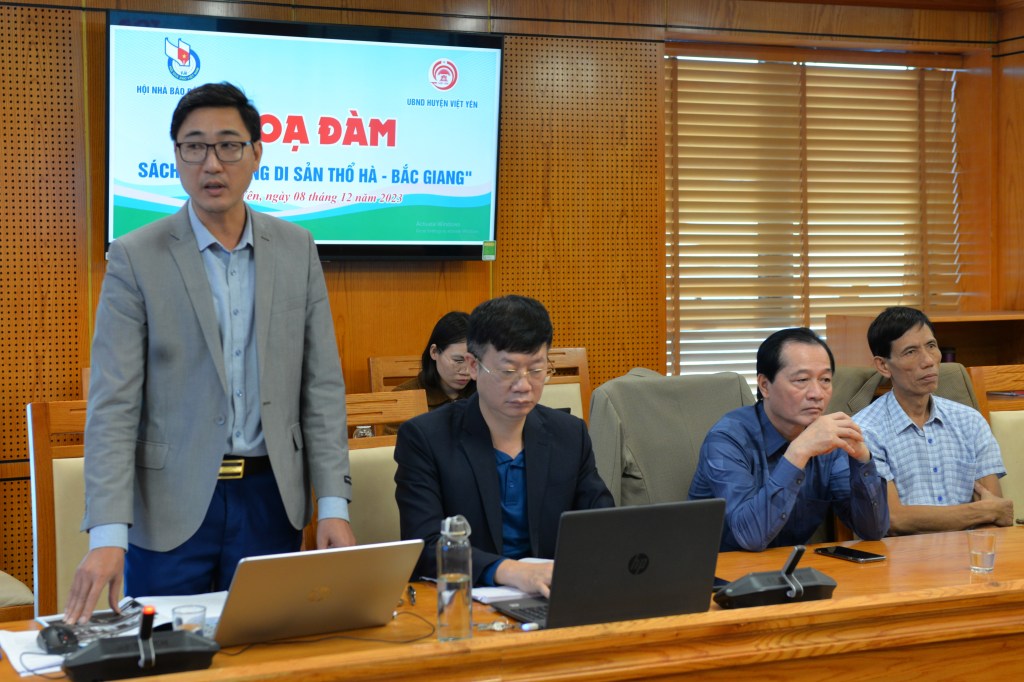 Phát biểu tại cuộc tọa đàm, đồng chí Thân Văn Thuần, Ủy viên BTV Huyện ủy, Phó Chủ tịch Thường trực UBND huyện bày tỏ lòng cảm ơn đến Hội Nhà báo tỉnh và Ban Biên soạn cuốn sách đã quan tâm phối hợp với huyện xây dựng cuốn sách. Qua cuốn sách giúp gìn giữ một cách tổng thể nét đẹp làng quê Kinh bắc nói riêng và làng quê trên địa bàn huyện Việt Yên nói chung. Cùng với phát triển kinh tế, thời gian qua, huyện Việt Yên cũng đã quan tâm đầu tư kinh phí để nâng cấp, gìn giữ và bảo tồn các di sản văn hóa.