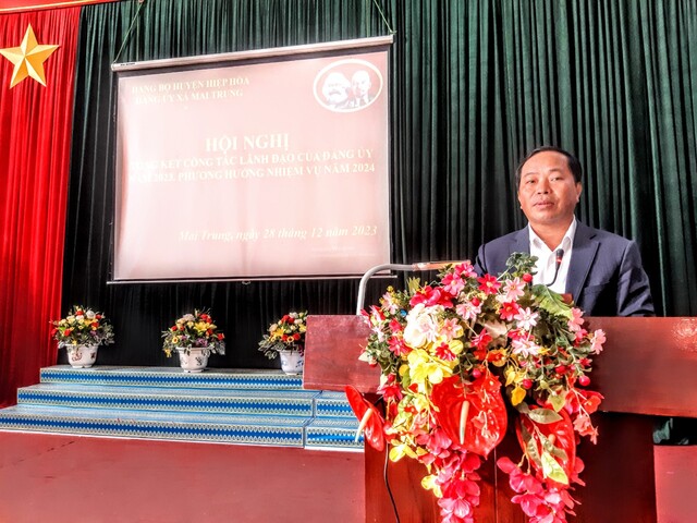 Tại hội nghị, các đại biểu được nghe báo cáo kết quả công tác xây dựng Đảng năm 2023, phương hướng, nhiệm vụ năm 2024. Theo báo cáo, Đảng bộ xã Mai Trung tiêp tục giữ vững đoàn kết, tập trung trí tuệ, phấn đấu đạt kết quả cao nhất các chỉ tiêu nhiệm vụ trọng tâm: 10/10 chỉ tiêu đạt và vượt.