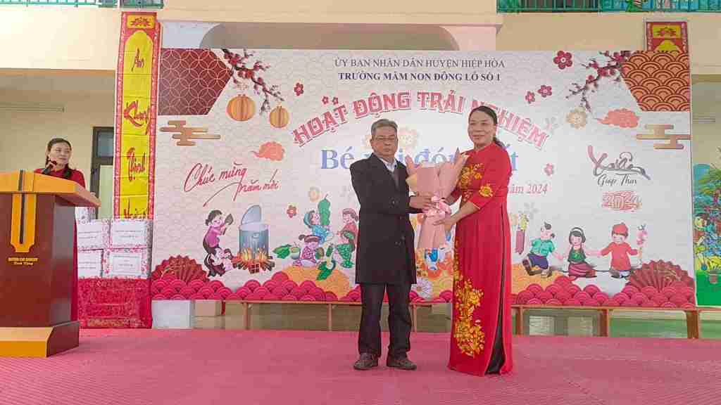 Thi đua lập thành tích chào mừng lễkỷ niệm 94 năm Ngày thành lập Đảng Cộng sản Việt Nam (03/02/1930- 03/02/2024) và hân hoan chào đón Tết Giáp Thìn 2024, chiều ngày 01/02/2024, Trường Mầm non Đông Lỗ số 1, Hiệp Hòa tưng bừng tổ chức hoạt động trải nghiệm “Bé vui đón tết” cho trẻ em toàn trường. Nhiều đại biểu, phụ huynh học sinh đã về dự và chúc mừng, động viên, hướng dẫn trẻ tham gia hoạt động trải nghiệm: Ông Trần Văn Thìn- Phó chủ tịch Ủy ban nhân dân xã Đông Lỗ cùng đại diện cấp ủy, ban quản lý các thôn; đại diện các doanh nghiệp trên địa bàn; ban đại diện cha mẹ học sinh và đông đảo phụ huynh nhà trường tham dự.