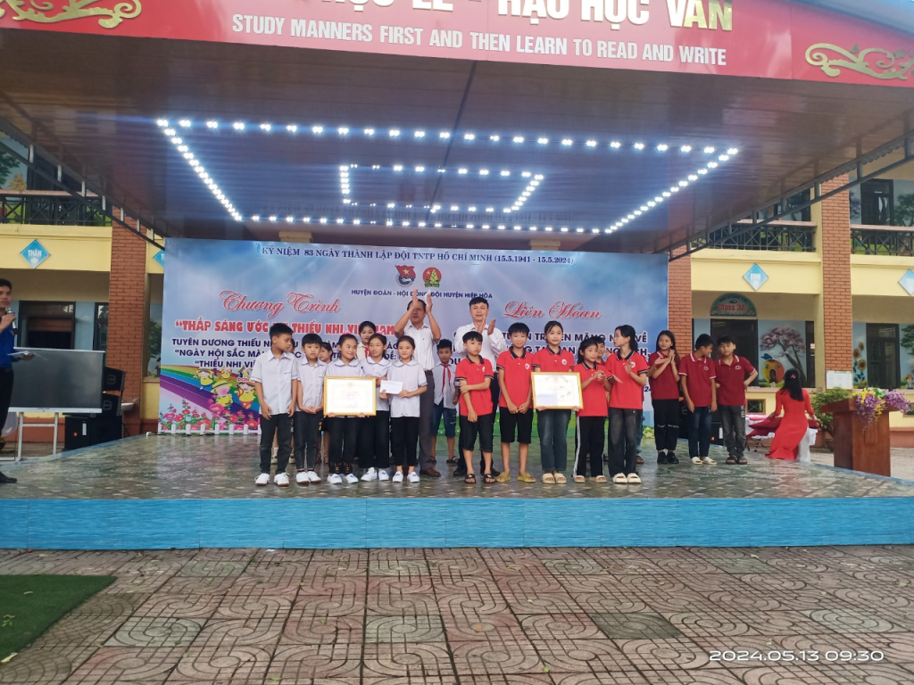 Sáng 13/5, Huyện đoàn- Hội đồng đội huyện Hiệp Hòa phối hợp với Phòng Giáo dục và Đào tạo tổ chức chương trình thắp sáng ước mơ việt nam Cuộc thi Vẽ tranh với chủ đề “Thiếu nhi Việt Nam làm nghìn việc tốt”; Liên hoan các đội tuyên truyền măng non về phòng chống tai nạn thương tích, đuối nước, xâm hại và bạo lực trẻ em kỷ niệm 83 năm ngày thành lập Đội TNTP Hồ Chí Minh (15/5/1941 – 15/5/2024) tại trường Tiểu Mai Trung số 2.