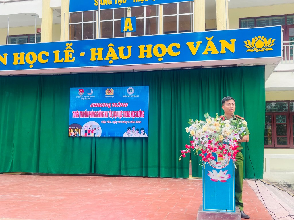 Hưởng ứng “Tháng hành động phòng, chống ma túy và Ngày toàn dân phòng, chống ma túy 26/6”. Sáng ngày 20/5, Huyện đoàn – Hội LHTN Việt Nam huyện Hiệp Hoà phối hợp với Công an huyện, trường THPT Hiệp Hoà số 3 tổ chức Chương trình “Tuyên truyền phòng, chống ma tuý, bạo lực trong học đường tại trường THPT Hiệp Hoà số 3.