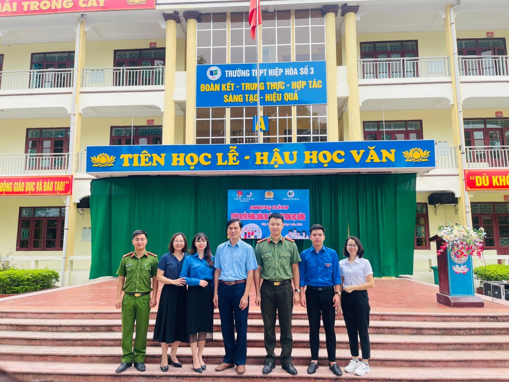 Dự chương trình có các đồng chí: Ngô Thị An Trang – Bí thư Huyện đoàn, Chủ tịch Hội LHTN Việt Nam huyện Hiệp Hoà, thầy Nguyễn Thanh Hải – Bí thư Chi bộ – Hiệu trưởng trường THPT Hiệp Hoà số 3; Thượng uý Nguyễn Văn Hiệp, Trung uý Đinh Văn Long – Cán bộ Công an huyện và gần 1500 cán bộ, giáo viên, học sinh trường THPT Hiệp Hoà số 3.