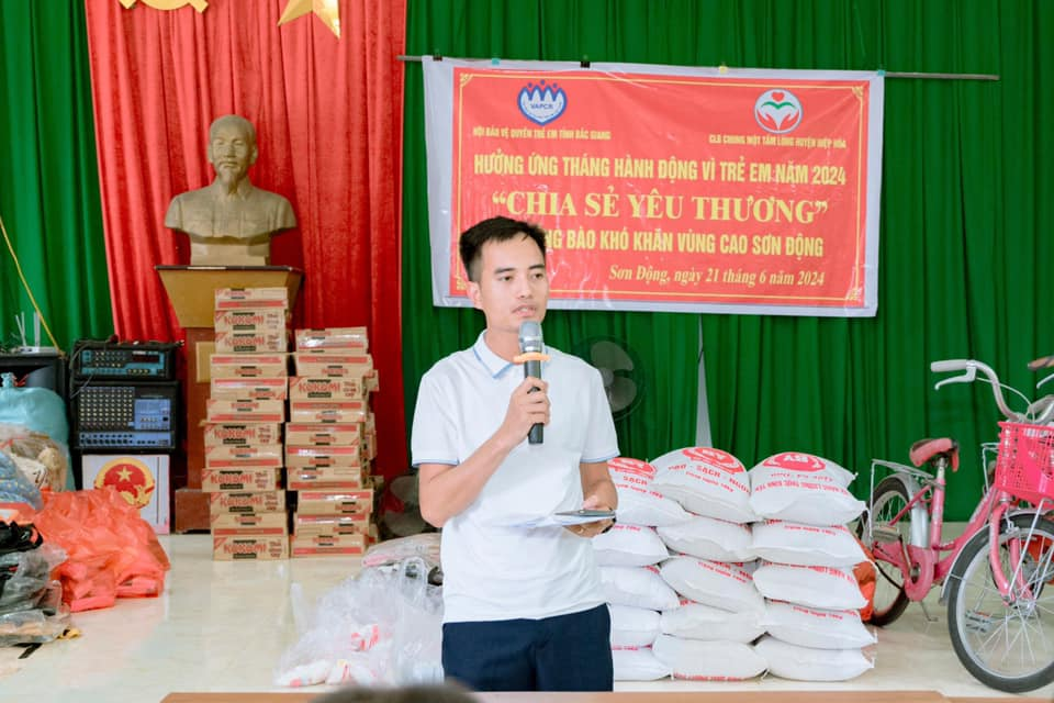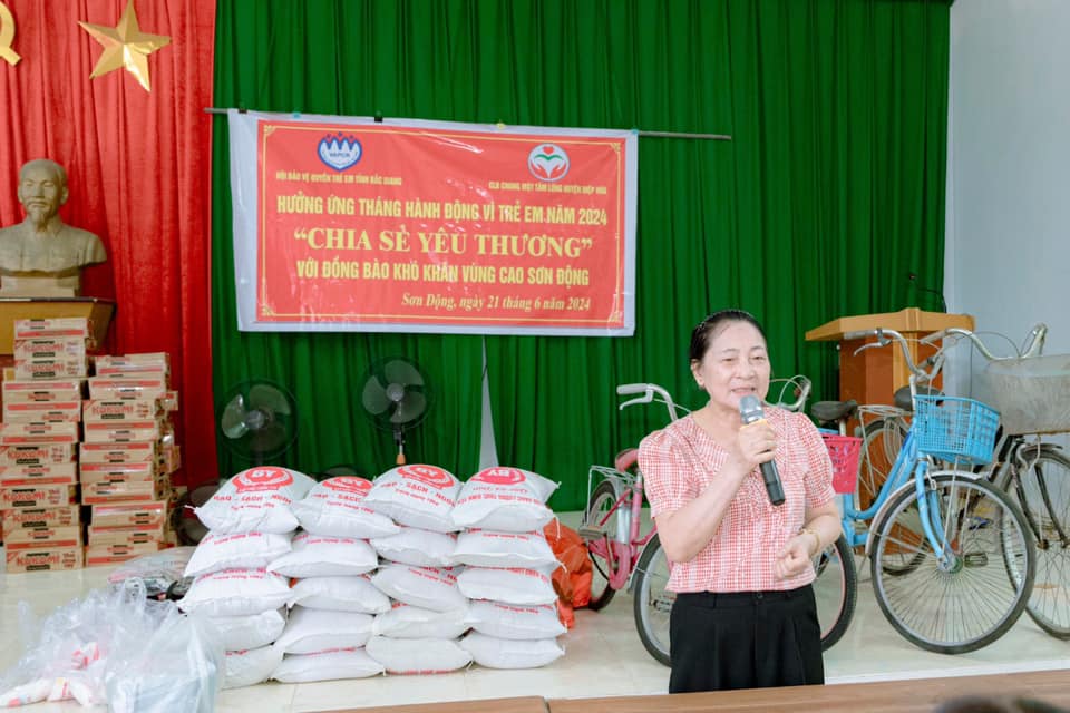 Sáng qua, 21/6, nhân tháng hành động Vì trẻ em, CLB Chung một tấm lòng huyện Hiệp Hoà đã phối hợp với Hội BVQTE tỉnh tổ chức chương trình ” Sẻ chia Yêu thương- Về với đồng bào khó khăn Sơn Động”. Tham dự chương trình có các đồng chí đại diện lãnh đạo Đảng uỷ- UBND và Hội LHPN xã An Lạc, đại diện Công ty Bảo hiểm Bảo Minh cùng đoàn thiện nguyện của CLB Chung một tấm lòng.