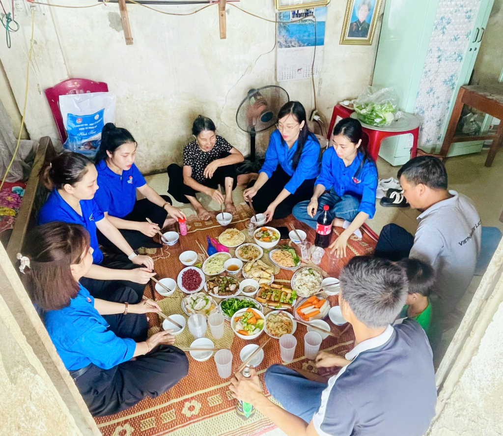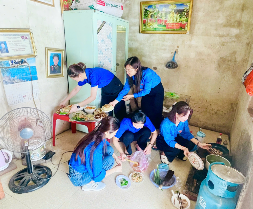 Nhân dịp kỷ niệm 77 năm Ngày thương binh Liệt sỹ 27/7, Đoàn xã Đoan Bái và Chi đoàn Cơ quan Đảng Đoàn thể huyện tổ chức đến thăm hỏi bà Trần Thị Phái (Sinh năm 1944), là vợ liệt sỹ Hà Văn Minh, thôn Đông, xã Đoan Bái. Bà Phái sống một mình trong căn nhà nhỏ nhiều năm nay. Thực hiện một ngày “Cùng ăn, cùng ở, cùng làm”, đoàn viên, thanh niên tổ chức tặng quà, phối hợp khám miễn phí các bệnh về mắt, da liễu, huyết áp cho bà Phái. Bên cạnh đó dọn dẹp nhà, vệ sinh cảnh quan xung quanh nhà, nấu bữa cơm gia đình, cùng trò chuyện, lắng nghe và chia sẻ những khó khăn trong cuộc sống, động viên bà vơi bớt những đau thương, mất mát, sống vui, sống khỏe.