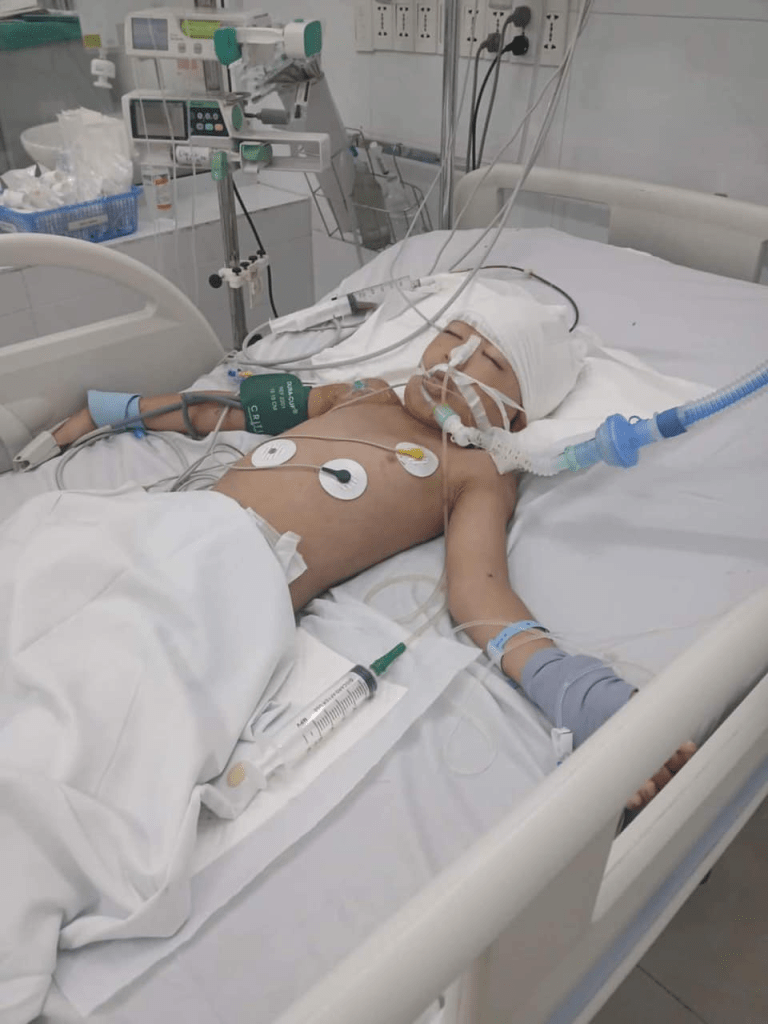 Cháu Nguyễn Đăng Nghĩa khi cấp cứu tại BV Việt Đức ( 11/7/2024)