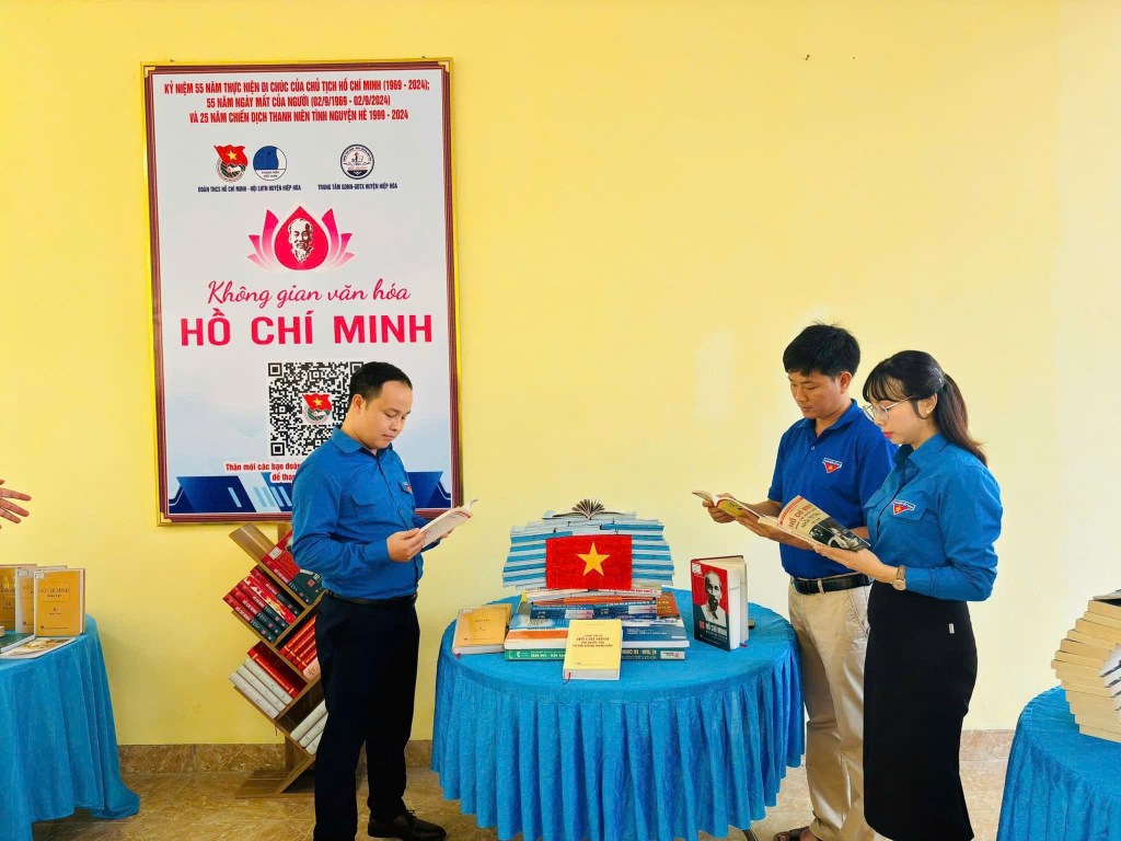 Tiếp nối buổi sinh hoạt, Huyện đoàn, Trung tâm GDNN-GDTX huyện ra mắt mô hình “Không gian văn hoá Hồ Chí Minh”. Tại đây đoàn viên, thanh niên được tham gia trải nghiệm Mô hình không gian thực tế ảo trưng bày các tư liệu về Bác Hồ bằng cách sử dụng điện thoại thông minh quét mã QR. Mô hình ứng dụng công nghệ hiện đại kết hợp với âm nhạc hào hùng, giọng nói truyền cảm của đoàn viên huyện Hiệp Hoà mang lại cho người dùng trải nghiệm chân thật nhất. Mô hình còn có các gian trưng bày sách về Bác, các mô hình Lăng Bác, nhà sàn Bác Hồ từ sách.