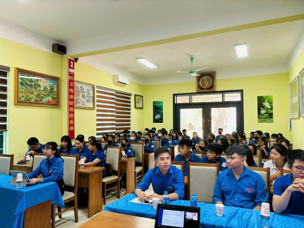 Dự buổi sinh hoạt có sự tham gia của các đồng chí: Ngô Thị An Trang – Huyện uỷ viên, Bí thư Huyện đoàn, Chủ tịch Hội LHTN huyện; Ban Giám đốc, BCH Đoàn cùng các thầy cô và hơn 100 đoàn viên ưu tú Trung tâm GDNN-GDTX huyện.