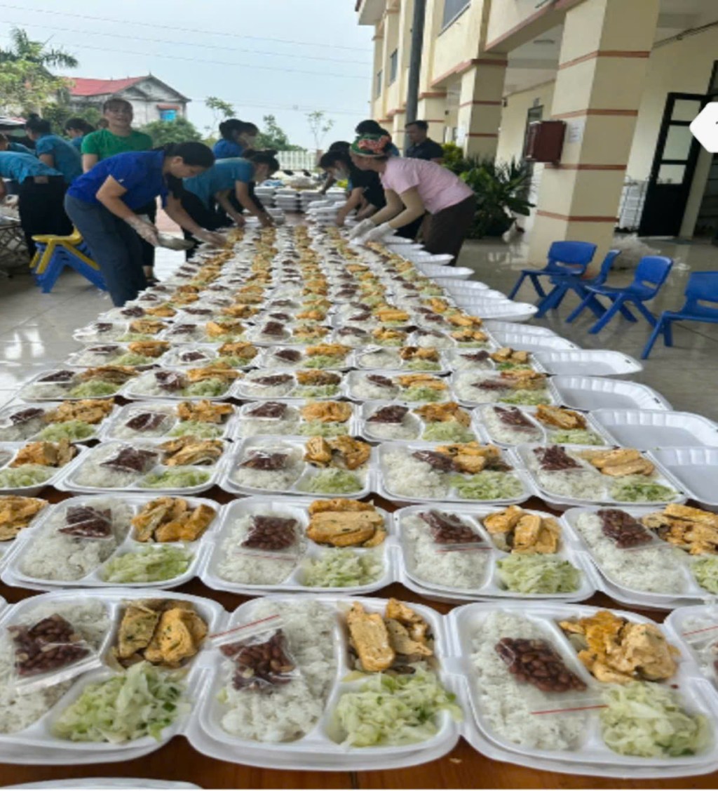 Phát huy truyền thống đoàn kết, tương thân tương ái “Một miếng khi đói bằng một gói khi no”, Sáng ngày 12/9/2024, Các đồng chí CBGV-NV nhà trường đã tự nguyện bảo nhau, góp công, góp sức, góp nhu yếu phẩm nấu 227 xuất cơm nghĩa tình, đảm bảo chất dinh dưỡng, kịp thời trao đến tay một số hộ nhà dân thôn Xuân Giang bị ngập lụt.