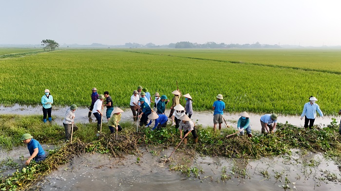 Sáng 15/9, ngay sau khi nước sông Cầu rút dần, UBND xã đã huy động nhân lực, phương tiện vớt bèo tây, rác thải khơi thông dòng chảy để nâng cao năng lực tiêu nước triệt để mặt ruộng nhằm hạn chế thiệt hại cho lúa và cây trồng khác do ngập úng. Sau 1 ngày tích cực tham gia trục vớt bèo, gần 3km kênh tiêu đã được dọn sạch.