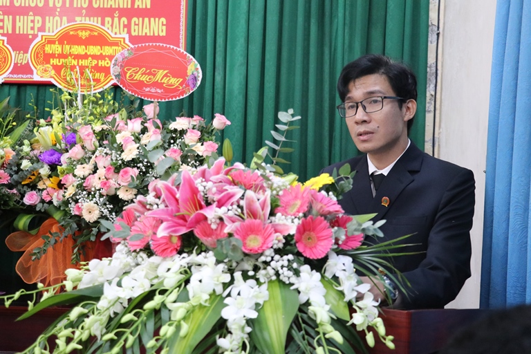 Phát biểu nhận nhiệm vụ, đồng chí Nguyễn Đức Nhường gửi lời cảm ơn đến lãnh đạo TAND tối cao, TAND tỉnh Bắc Giang; Huyện ủy- HĐND- UBND huyện Hiệp Hòa, tập thể lãnh đạo, cán bộ công chức Tòa án nhân dân huyện Hiệp Hòa, đã tín nhiệm. Đồng chí Nhường khẳng định sẽ luôn nhận thức rõ nhiệm vụ, trách nhiệm của mình và phấn đấu hoàn thành xuất sắc nhiệm vụ được giao.