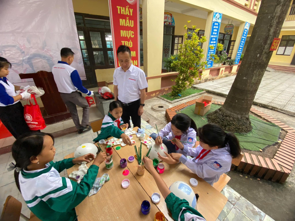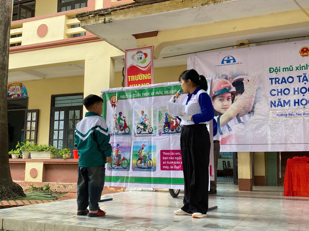 HDV của Honda Đông Ngàn tập huấn kiến thức về ATGT ,trao thưởng động viên và tặng mũ bảo hiểm cho các cháu.