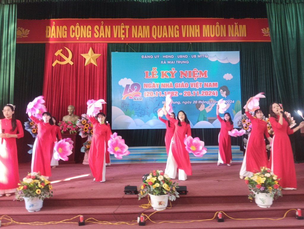 Hòa trong không khí vui mừng phấn khởi của cán bộ Đảng viên, giáo viên và nhân dân xã Mai Trung đang ra sức thi đua thực hiện thắng lợi các nhiệm vụ chính trị, kinh tế văn hóa xã hội năm 2024, thiết thực chào mừng kỷ niệm 42 năm ngày Nhà giáo Việt Nam.