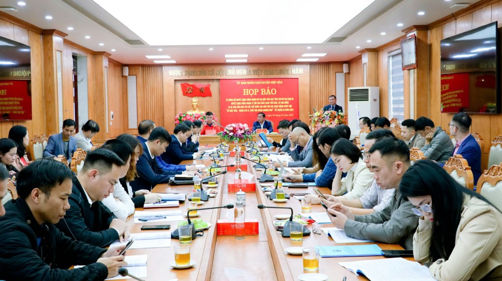 Chiều 03/01/2025, UBND huyện Hiệp Hòa đã tổ chức buổi họp báo thông tin về việc tổ chức sự kiện Lễ công bố Quyết định của Bộ trưởng Bộ xây dựng, công nhận huyện Hiệp Hòa đạt tiêu chí Đô thị loại IV; đón nhận Giấy chứng nhận Lễ hội bơi chải làng Tiếu Mai, xã Mai Đình là Di sản văn hóa phi vật thể quốc gia gắn với các hoạt động tại Ngày hội “Về Hiệp Hòa – Thăm ATKII, trẩy hội Bánh Chưng Vân” năm 2025; với quy mô cấp huyện.