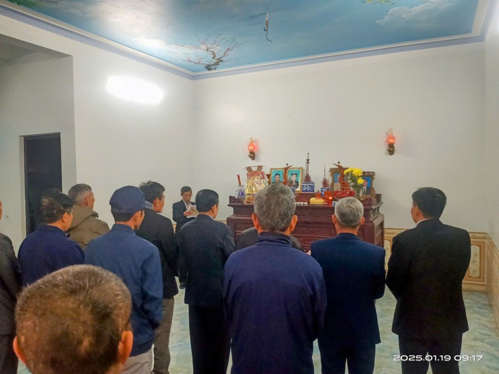 Trên ngôi nhà thờ, các cụ cao niên sửa soạn bàn thờ gia tiên. Mọi việc xong xuôi, đại diện những gia đình trong dòng họ thắp nén nhang tâm kính cẩn tạ ơn ông bà, tổ tiên, rồi mời các cụ về thụ hưởng lễ vật của con cháu.