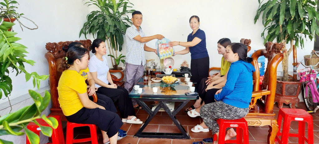 Đ/c Nguyễn Thị Hợp – Hiệu trưởng thăm và tặng quà các gia đình chính sách