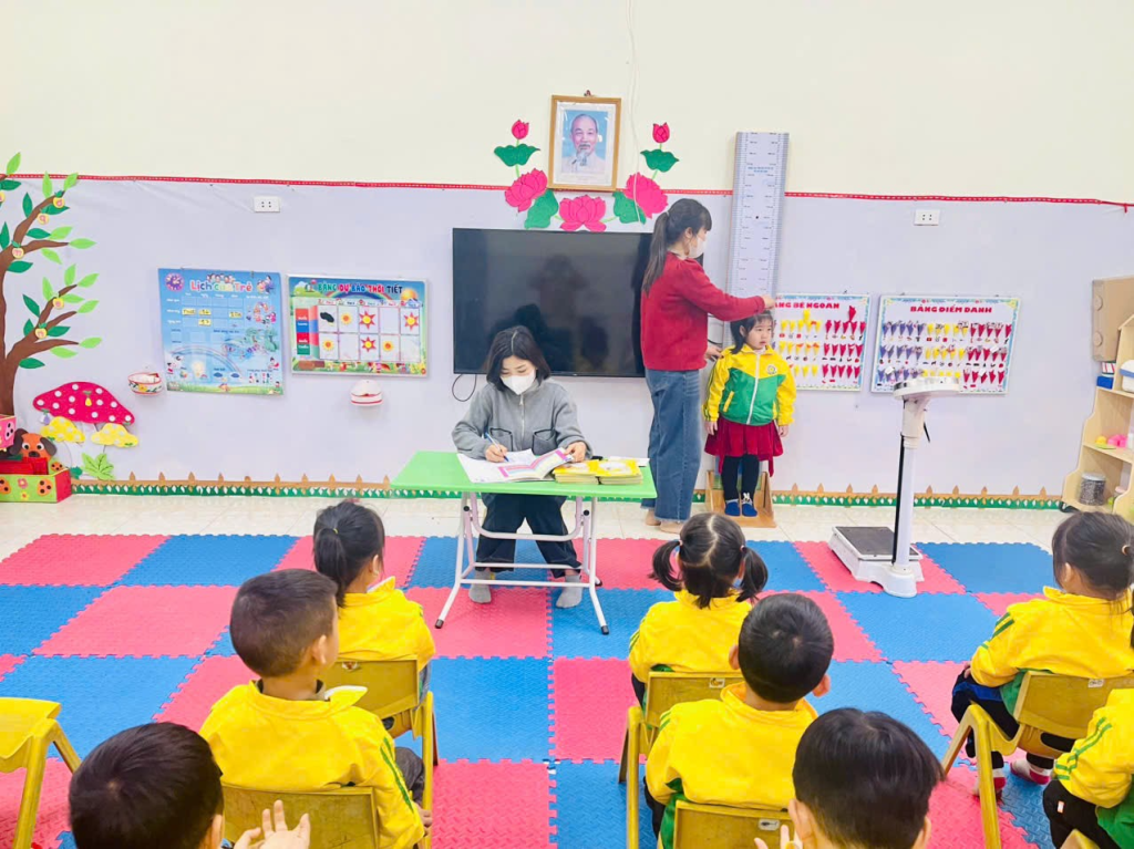 Từ nhiều năm nay, việc tổ chức cân, đo theo dõi biểu đồ phát triển cho trẻ tại Trường mầm non Mai Trung số 2, huyện Hiệp Hòa đã được nhà trường thực hiện thường xuyên theo kế hoạch 4 lần/1 năm học. Mỗi quý giáo viên phụ trách các nhóm lớp đã tổ chức thực hiện cân, đo theo dõi biểu đồ đối với tất cả học sinh ở các điểm trường (Nội Xuân, Mai Phong, Cẩm Trang: cân, đo lần 1: Tháng 9/2024; Lần 2: Tháng 11/2024; Lần 3: Tháng 02/2025; Lần 4: Tháng 5/2025).