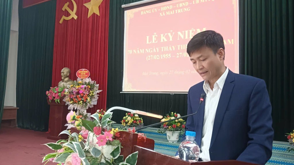 Chiều 27-2-2025, tại hội trường UBND xã Mai Trung, Đảng ủy- UBND và Trạm y tế xã Mai Trung long trọng tổ chức lễ kỷ niệm 70 năm Ngày Thầy thuốc Việt Nam (27-2-1955 – 27-2-2025).