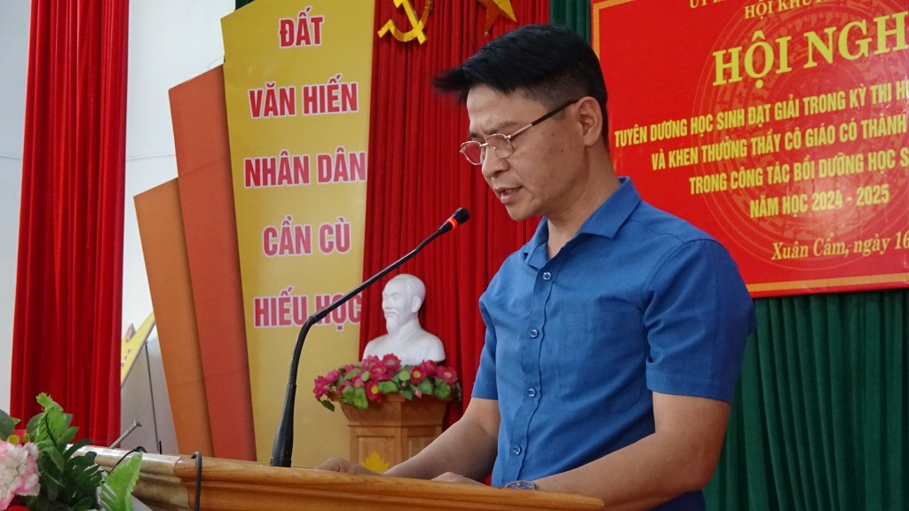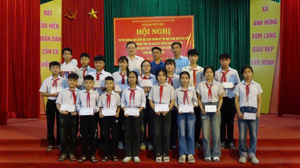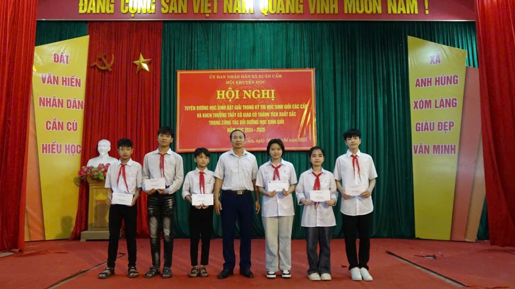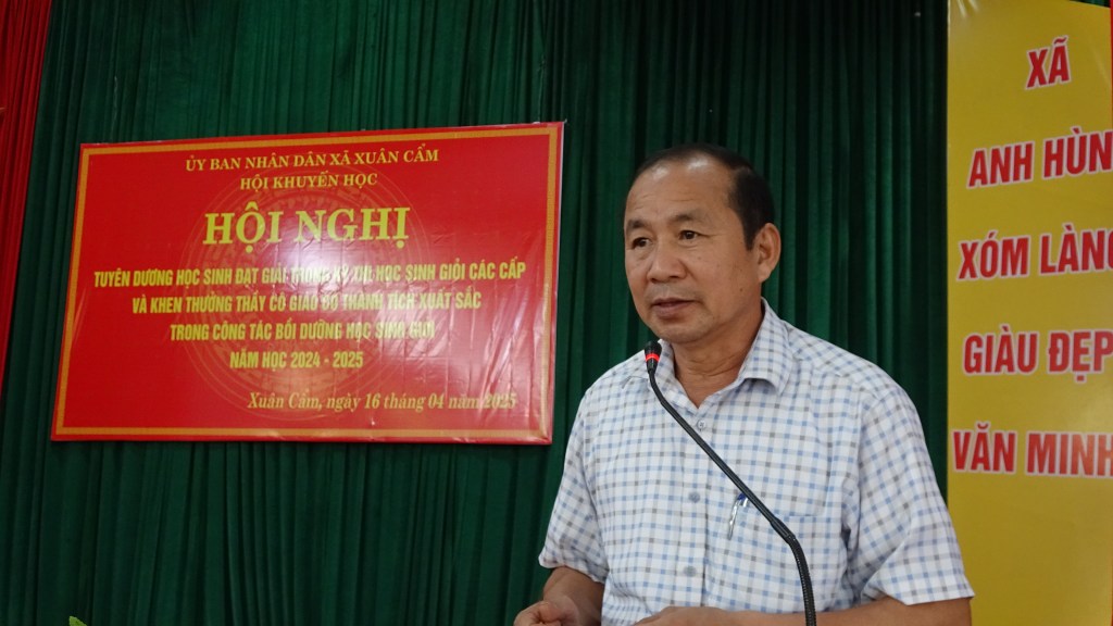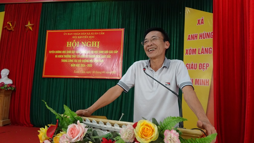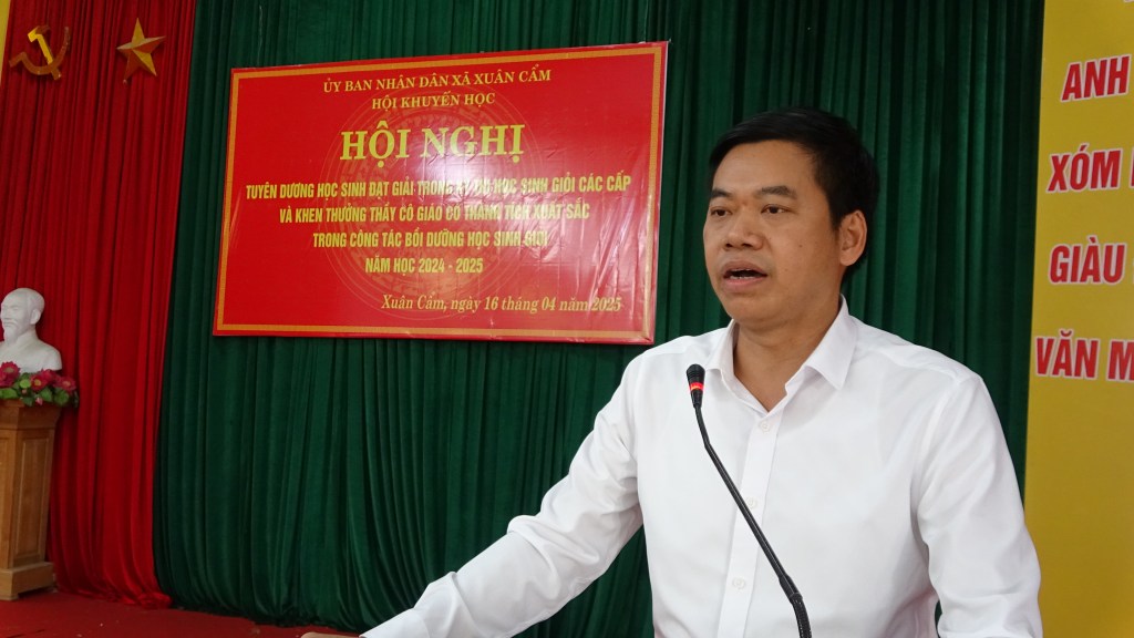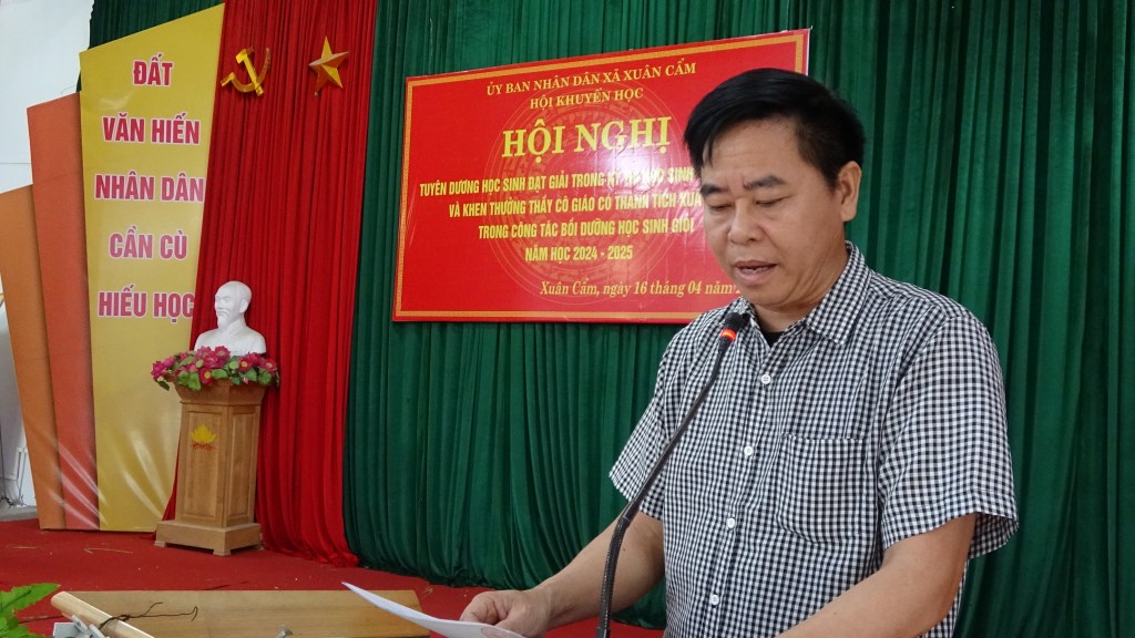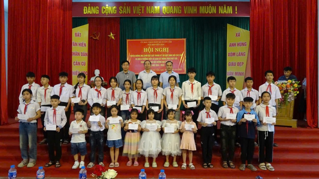 Chiều 16/4/2025 UBND xã Xuân Cẩm trang trọng tổ chức “Hội nghị tuyên dương học sinh đạt giải, trong kỳ thi học sinh giỏi các cấp và khen thưởng các thầy cô giáo có thành tích xuất sắc trong công tác bồi dưỡng học sinh giỏi(HSG) năm học 2024- 2025.
