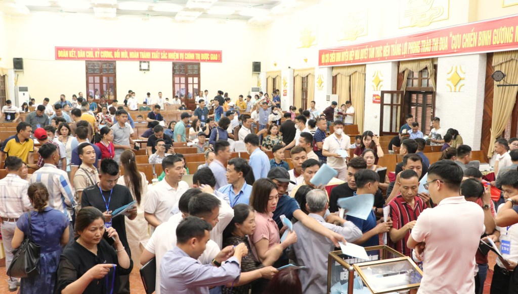 Tại phiên đấu giá có 186 khách hàng với 765 hồ sơ, tham gia đấu giá bằng hình thức bỏ phiếu trực tiếp (một vòng) tại cuộc đấu giá theo phương thức trả giá lên.