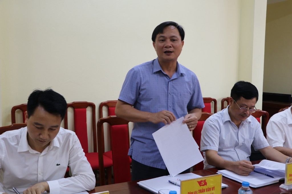 Đồng chí Trần Văn Vỹ- Phó Bí thư TT ĐU xã Hoàng Vân báo cáo tình hình hoạt động của xã Hoàng Vân sau khi sáp nhập
