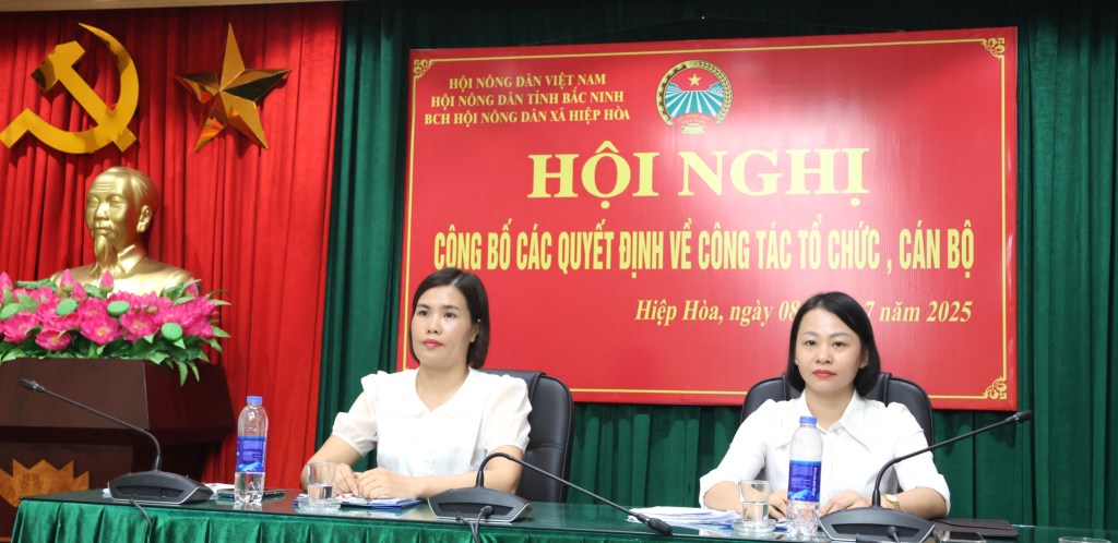 Tại hội nghị, Lãnh đạo Hội Nông dân xã Hiệp Hòa công bố Quyết định số 43-QĐ/HNDT ngày 01/7/2025 của BCH Hội Nông dân tỉnh Bắc Ninh về thành lập Hội Nông dân xã Hiệp Hoà và Quyết định số125-QĐ/HNDT, ngày 01/7/2025 của BCH Hội Nông dân tỉnh Bắc Ninh về chỉ định Ban chấp hành và Ban Thường vụ, Chủ tịch, Phó Chủ tịch Hội Nông dân xã Hiệp Hòa.